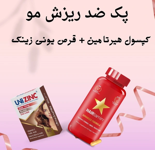 پک ضد ریزش مو (کپسول هیرتامین + قرص یونی زینک)